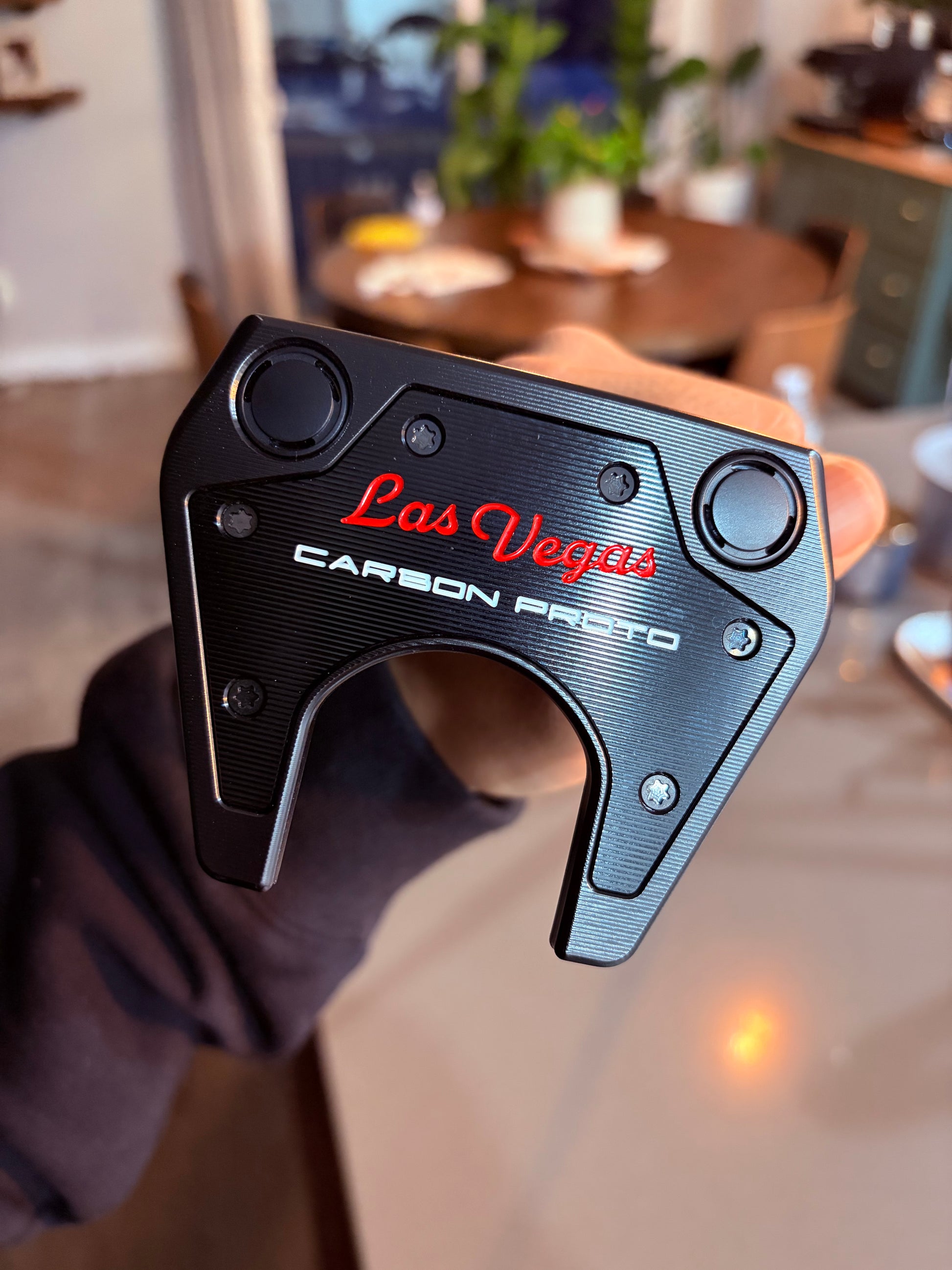 Internally, we completely redesigned the milling under the soleplate – eliminating unwanted vibration and creating the deep and satisfying feedback that carbon steel putters from years ago were so famous for. The result is one of the most exceptional feeling winged mallet putters we have made. Las Vegas Carbon Proto delivers performance and beauty in spades.